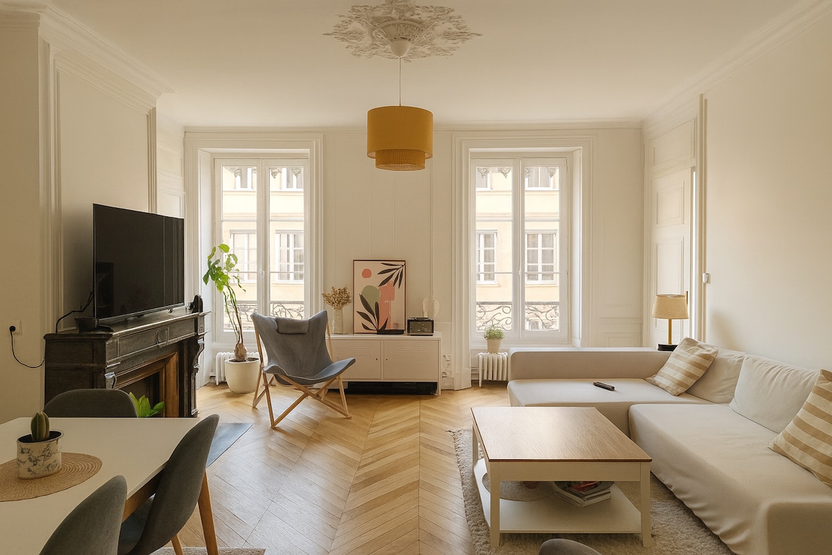 Intră într-o traboule, clădirea tipică din Lyon. Nu există lift aici, fiecare scară este o plimbare prin istorie, înconjurată de restaurantele și barurile din centrul plin de viață al orașului. În interior, atmosfera se schimbă complet: vibrații tropicale cu palmieri exotici și culori calde. Piesa centrală? O cadă cu jacuzzi luminată cu LED-uri, perfectă pentru relaxare după o zi de explorare a centrului orașului Lyon. O ședere cu adevărat unică pentru călătorii care doresc să se bucure de o călătorie în timpul călătoriei.