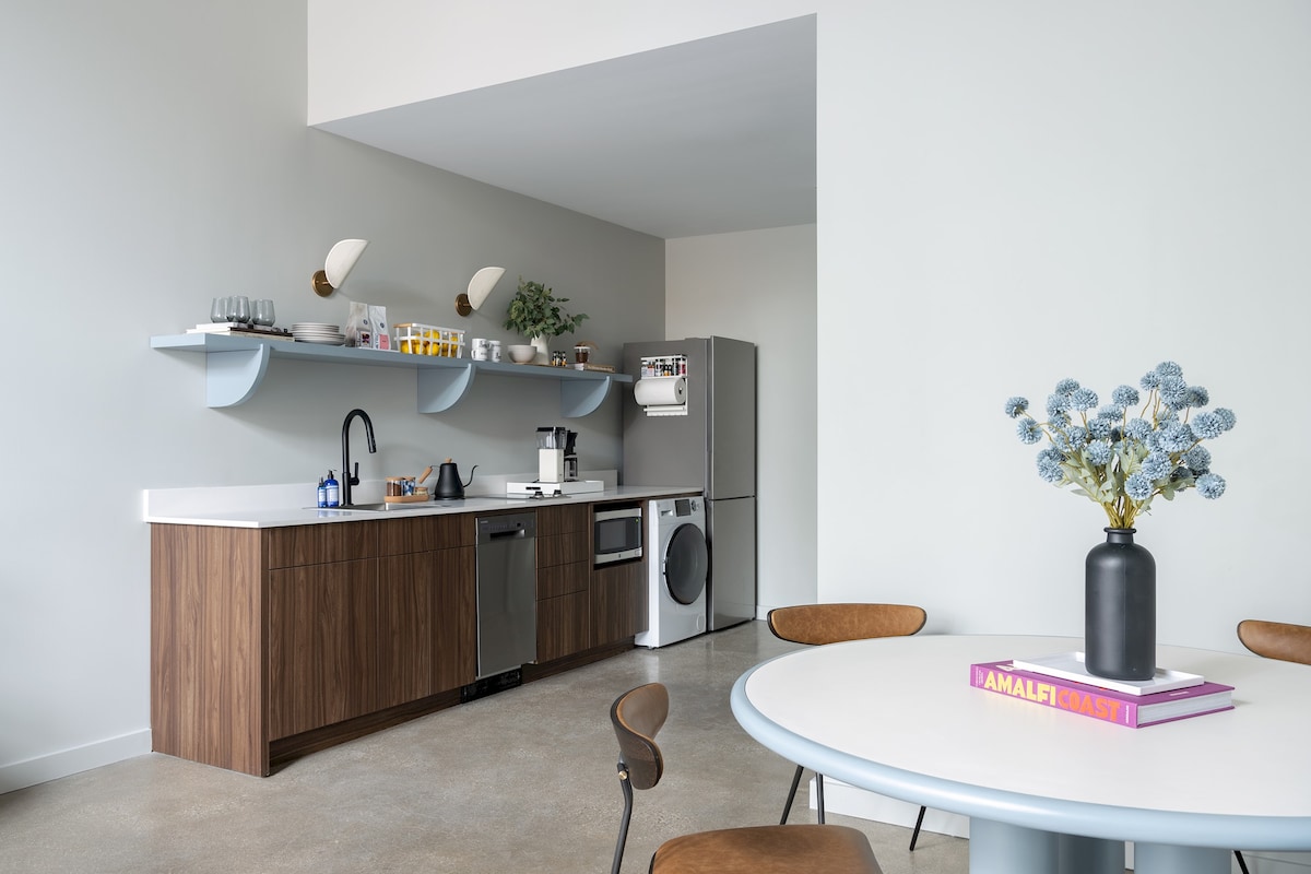 Descoperă loftul nostru modern, spațios, pe două niveluri, perfect pentru persoanele care călătoresc în interes de afaceri. Cu tavane înalte, ferestre din podea până în tavan și o terasă privată recent renovată, cu loc pentru foc de tabără. Situat în inima Restaurant Row, la doar două minute de centrul orașului. Bucură-te de o ședere de lux cu un loc de parcare dedicat inclus. Ideal pentru persoanele care călătoresc singure sau pentru cuplurile care caută un refugiu urban elegant.