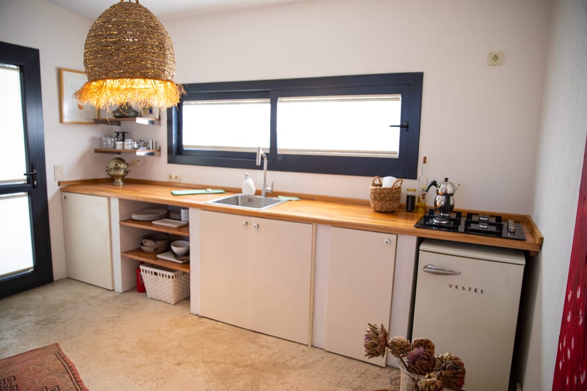 Pentru a-ți împărtăși momentele și a adăuga unul nou la amintirile tale, am dori să iei o pauză în această locuință unică pe 12 acri de teren din Urla Kekdukepe. Dacă dorești să fii la curent cu unele lucruri despre viață, acesta este locul. Casa noastră are 1 pat dublu king-size care măsoară 200 x 200, 1 pat de o persoană și o canapea mare. Numărul de paturi este crescut cu paturi gonflabile pentru persoane suplimentare. Iepurii, pisicile și veverițele te vor însoți pe parcursul șederii.