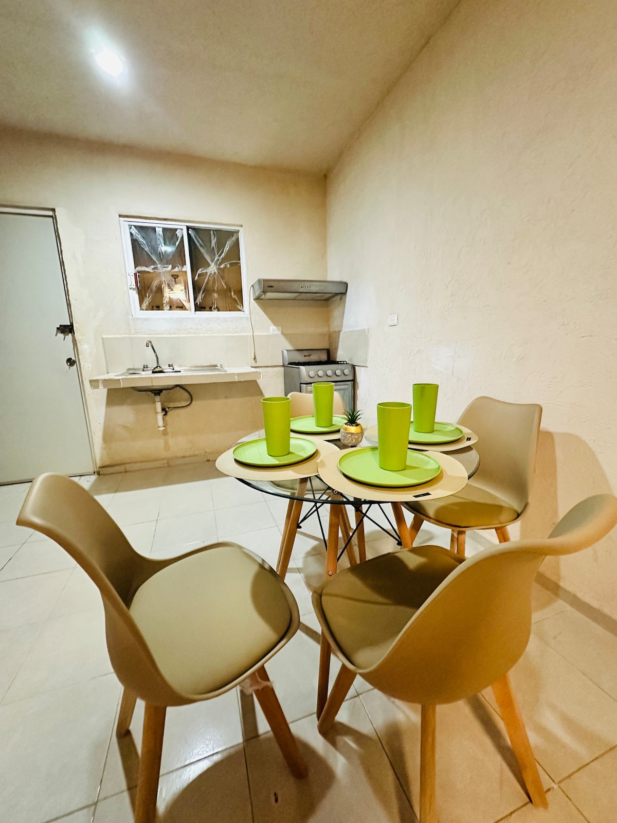 Bucură-te de acest nou Airbnb, cu pereți pictați cu minerale naturale și o cameră de cedru restaurată din anii 1960. La numai 9 minute de aeroport, la 1 minut de ieșirea spre traseul Puuc și Uxmal, proiector inteligent pentru a vă bucura de filme sau seriale, patul matrimonial și două hamace sunt complementul ideal pentru odihnă, pe terasă bucurați-vă de un grătar cu cărbuni, jocuri de masă și de cântatul păsărilor, departe de zgomotul orașului, cartier sigur, deoarece poliția locuiește în el.