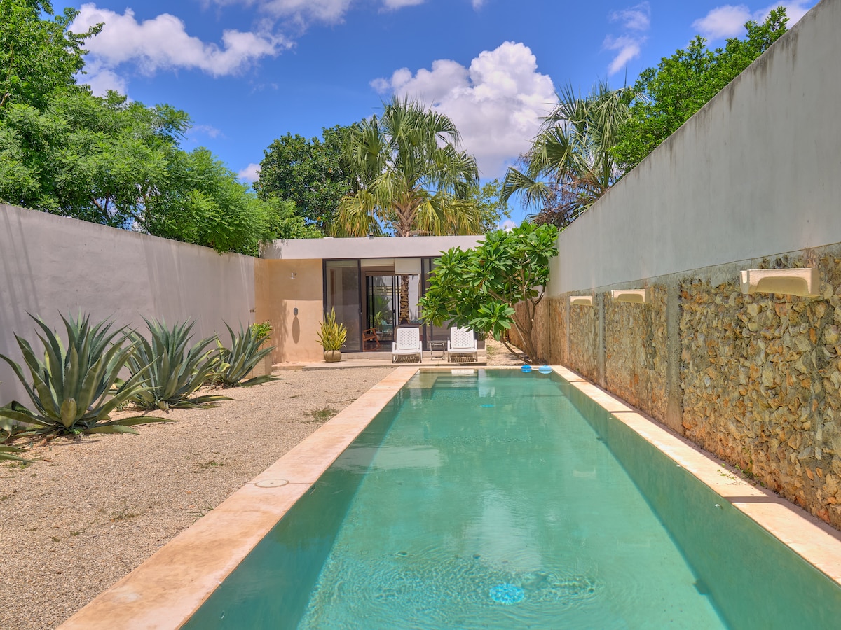 Casă mică frumoasă în centrul istoric al orașului Merida. Casă ecologică cu încălzitor solar. Restaurat cu materialele tradiționale din regiune, cum ar fi Chucúm pe pereți, pentru a decora. Confortabil și sofisticat. Bucură-te de piscină și de această oază mică după o plimbare în oraș. Situat strategic în apropiere de Plaza de San Cristobal, Mercado de la Ciudad San Benito și Parque La Mejorada. Are tot ce ai nevoie pentru a te bucura, a te bucura și a te relaxa.