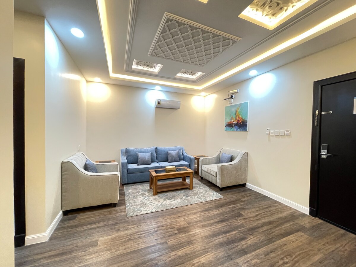 Apartament elegant și practic în cartierul Al-Wasaif din Abha, o locație specială în apropiere de cele mai bune cafenele, restaurante și locuri de divertisment și turistice. Apartamentul oferă intimitate completă cu check-in independent, care asigură acces ușor în orice moment. Un design interior liniștit și confortabil, care include un dormitor, un living și o baie echipată pentru a satisface nevoile de odihnă și relaxare. De asemenea, include Wi-Fi gratuit, un abonament Shahid și un loc privat de parcare, pentru o experiență completă și ușoară