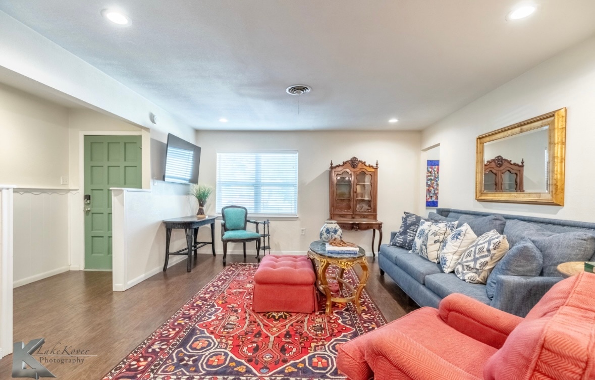 Come and enjoy a newly restored 1965 house conveniently located in an established neighborhood 15 min from anywhere you want to go in Abilene. With more than enough space for couples, families, business travelers or a group of friends, the house boasts of 4 beautiful bedrooms including a private master suite with luxurious queen bed. Other bedrooms include an additional queen bed, 1 full bed and 2 twin beds. Enjoy a fully equipped kitchen with all the essentials to make your own meals. Every space is fully furnished and tastefully decorated with your comfort in mind. Fast wireless internet, smart T.V., streaming services and a comfy couch for you to relax on at the end of your day. Experience indulgent extras to enhance your stay upon request include grocery services, romance packages, home cooked meal deliveries, and so much more! For 5 generations the House family has called Abilene home so we are excited to welcome you to our hometown. We cannot wait to provide our guests with all our favorite local Abilene restaurants, coffee shops, top attractions, and fun experiences to ensure your stay in Abilene is enjoyable!