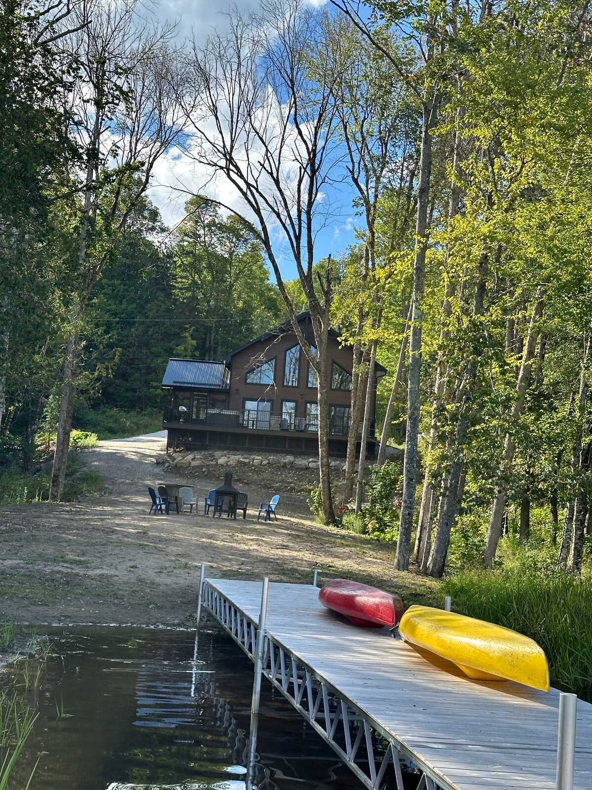 Casă pe Lacul Preissac. Lot ✼ mare:spa, grătar, masă în aer liber, doc (iarna, coborârea cu snowmobilul la lac), două caiace. ✼Parcare gratuită. ✼ Internet de mare viteză și nelimitat ✼Etajul 1: bucătărie, living, cameră mare cu pat dublu și două paturi de o persoană, dormitor cu pat matrimonial și baie. ✼Etajul 2: mezanin cu baie cu Polycouch (cu canapea extensibilă) și dormitor cu pat matrimonial ✼Subsol două dormitoare pat king și o baie