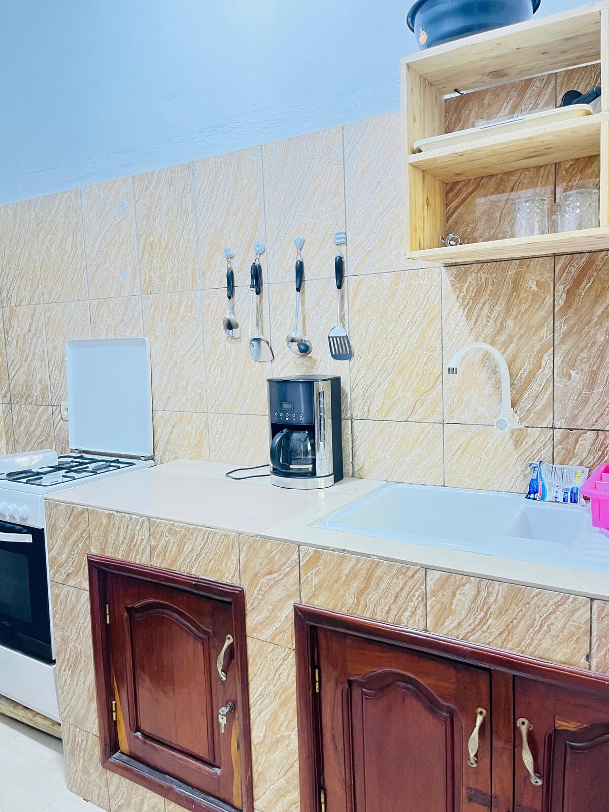 Oferim acest apartament frumos în orașul Abomey-Calavi, nu departe de capitala economică Cotonou. Este aproape de cel mai mare mall Super U. și la doar câteva minute de Veneția Africii (Ganoviet). Este un apartament modern cu aer condiționat (living spațios și 2 dormitoare independente), funcțional, cu o bucătărie complet echipată (aragaz – cuptor cu gaz etc.). Piscina complet privată de la Rooftop este perfectă pentru relaxarea ta și va fi exclusivă pentru tine.