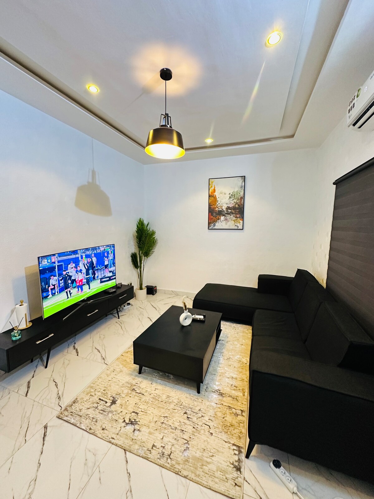 Bucură-te de acest apartament elegant și spațios situat în inima centrului orașului Calavi și perfect pentru șederile tale. Toate camerele sunt dotate cu aer condiționat, Bucătăria are toate facilitățile moderne, Livingul este dotat cu un televizor inteligent și un sistem de hifi JVC 2.1 pentru a vă îmbunătăți momentele de relaxare, Wi-Fi este disponibil în apartament Pentru șederi de lungă durată , agenții noștri fac curățenia generală la fiecare 2 săptămâni, la cererea ta.22965284414