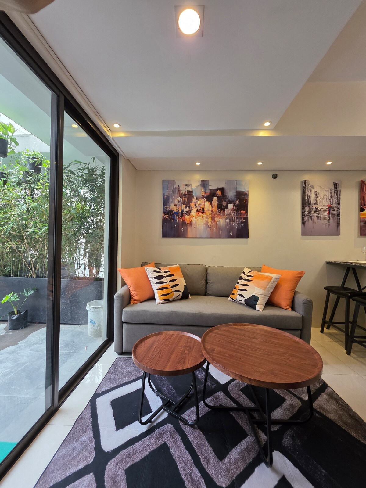 Situată perfect în inima cartierului Poblacion, Makati Restaurant și Entertainment, unitatea noastră este situată la etajul 4 al unei clădiri tip boutique de apartamente cu pază 24 de ore din 24. 1br oferă vedere, un interior modern și facilități de la mijlocul secolului al 50-lea, inclusiv un televizor de 55", Netflix, 150 Mbps și o BUCĂTĂRIE mică. Mergi pe jos până la barurile din apropiere, restaurantele ocazionale și mesele rafinate. Experimentează arta și cultura! Destinația perfectă pentru cupluri, aventurieri solo, un călător de afaceri, călătorii scurte și vacanță.