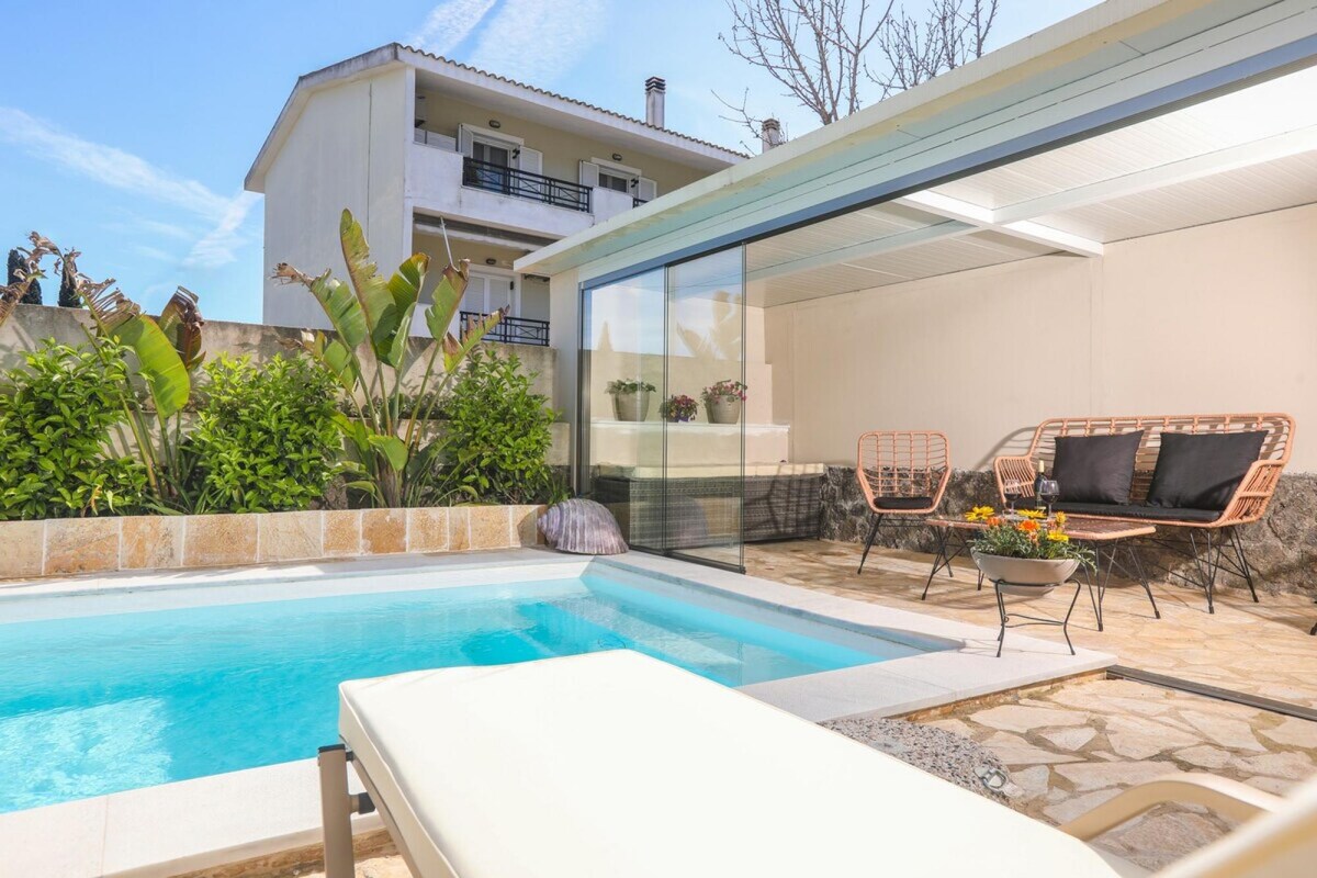 Descoperă luxul și liniștea la Villa Dafni! Amplasat pe un teren privat, împrejmuit, cu vedere uluitoare la munte și apus de soare. Această vilă poate găzdui până la 5 oaspeți cu două dormitoare (un pat dublu, două paturi de o persoană) și o canapea extensibilă în living. Bucură-te de două băi moderne, o bucătărie complet utilată și o mașină de spălat rufe. Facilitățile în aer liber includ o piscină, o zonă de grătar și o grădină. Rămâi activ în zona sălii de sport. Bucură-te de intimitate și confort la Villa Dafni, refugiul tău perfect din Corfu.