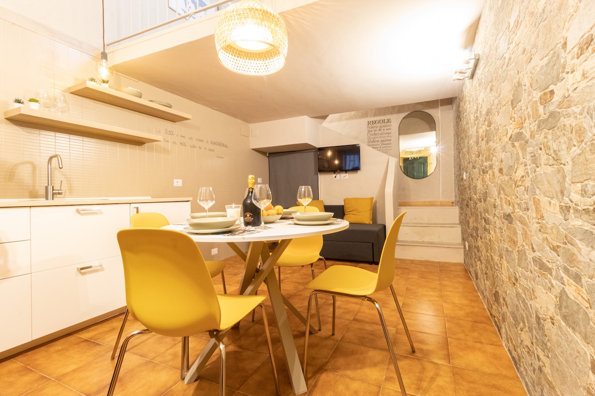 Un piccolo appartamento indipendente che si affaccia su un cortile interno. Ricavato in un edificio di fine Ottocento, presenta ancora il pavimento originale in mattonelle di cemento, che è stato conservato per quanto possibile. Un'oasi quasi di campagna nascosta nella città storica, in un quartiere popolare vicinissimo al complesso barocco dell'ex monastero dei Benedettini e a pochi minuti a piedi dal centro storico. Con la possibilità di godere anche del giardino comune.