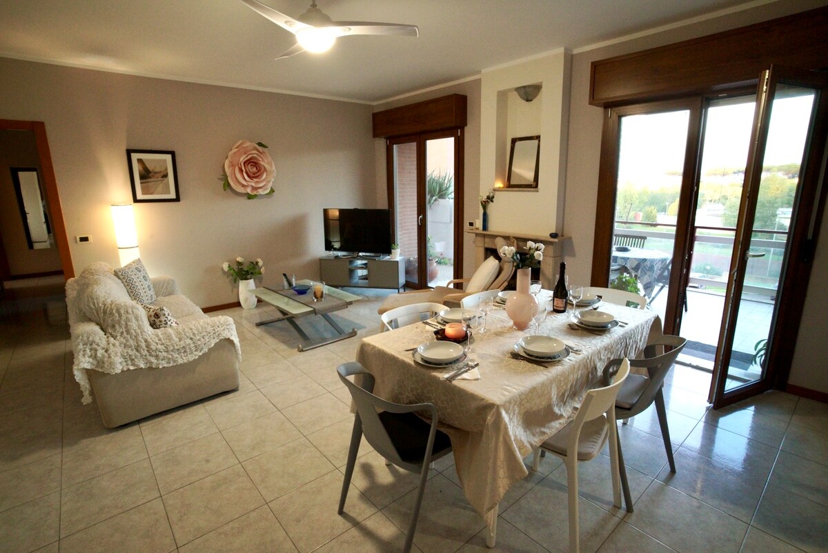 Moderno e confortevole appartamento a 3 minuti dall’aeroporto. Rilassati e goditi una colazione o un aperitivo con il meraviglioso terrazzo vista mare! Addormentati con il rumore delle onde del mare! Spazioso parcheggio privato. Roma a 25 minuti di distanza. Possibilità di arrivare al mare in pochi minuti. Potrai goderti i migiori ristoranti di pesce di Roma! Presenti a pochi metri supermercati, bar e farmacie. Possibilità di organizzare taxi per raggiungere l’appartamento e l’aeroporto