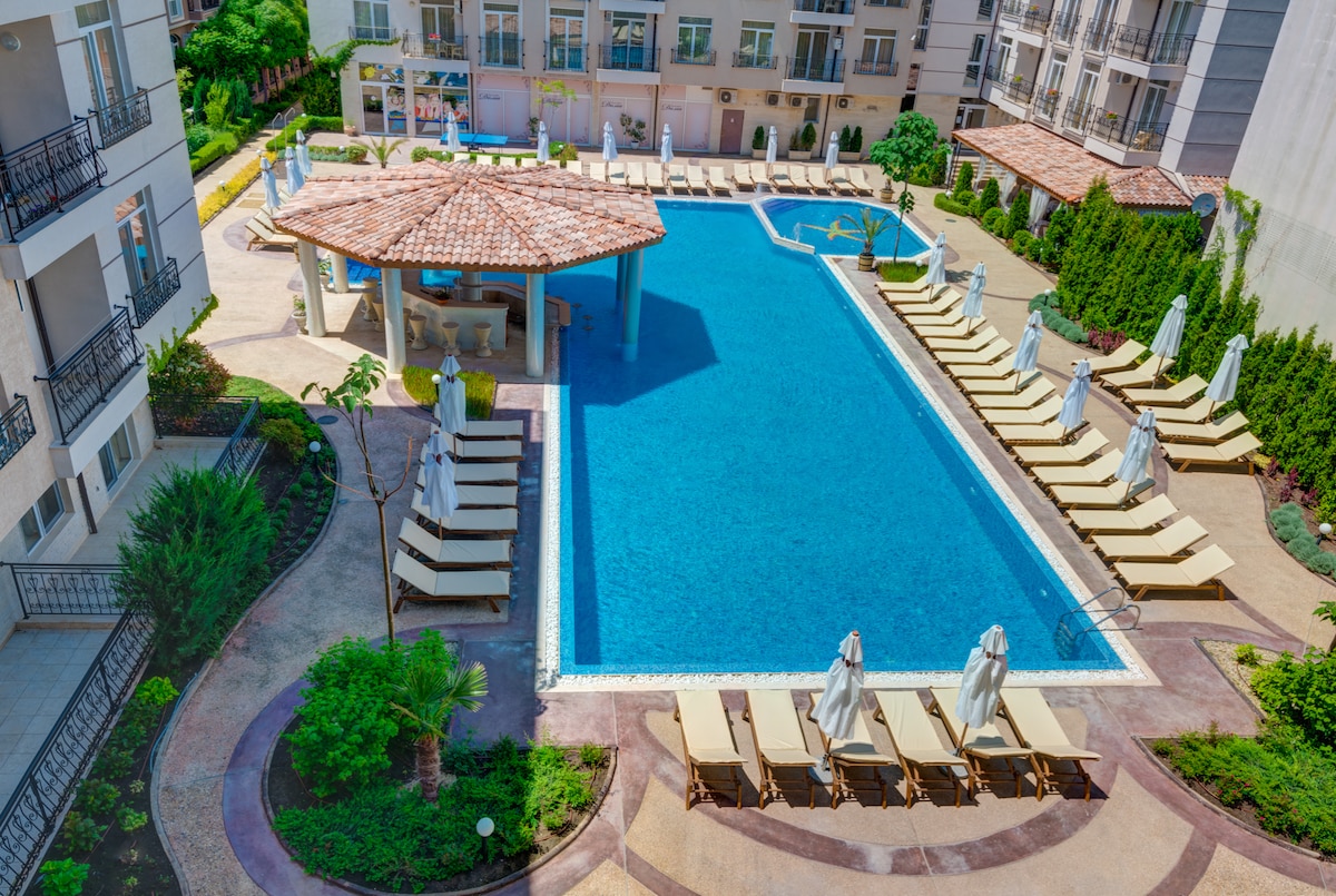 Studio fermecător cu vedere la piscină în Cascadas, Sunny Beach