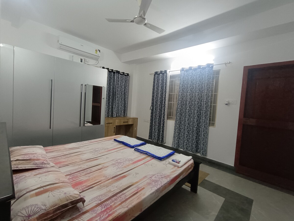 This is a brand new home and there is a separate balcony for a pleasant view and wardrobes also attached to make the guests feel comfortable. Guests are served with Luxury beds and air-conditioned. There is a separate living room, kitchen, and microwave for cooking purposes. 20 Mts drive to ISHA, 15 mts to Pateeswar temple. 500 M from vadavalli main road, 500 M to veg/non veg hotels. 6 KM to R.S PURAM. 500 M for fuel stations. 4 KM to Marudamalai temple. 3 Km to Bharadidhasan university.