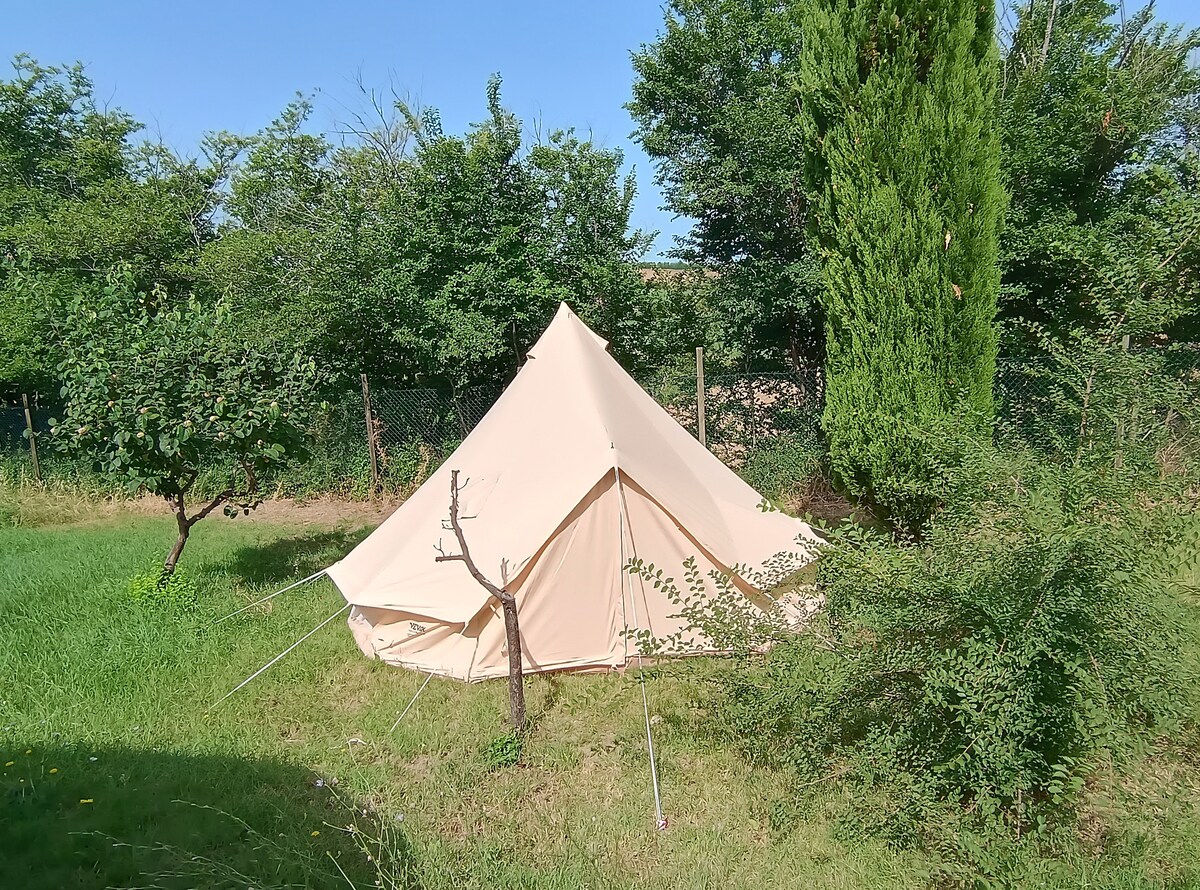 Imaginează-ți un mic refugiu romantic cufundat în natură, înconjurat de copaci și cu iarba verde a unui luminiș privat de jur împrejur. Dormi într-un cort mare mobilat, cu tot confortul unui dormitor adevărat din interior. Făcând o baie cu hidromasaj la apus sau sub stele afară sau chiar vizionând un film în cinematograful tău privat în aer liber, aici... aceasta face parte din experiența Glamping pe care dorim să o oferim cu cortul nostru Bell, La Cabana!