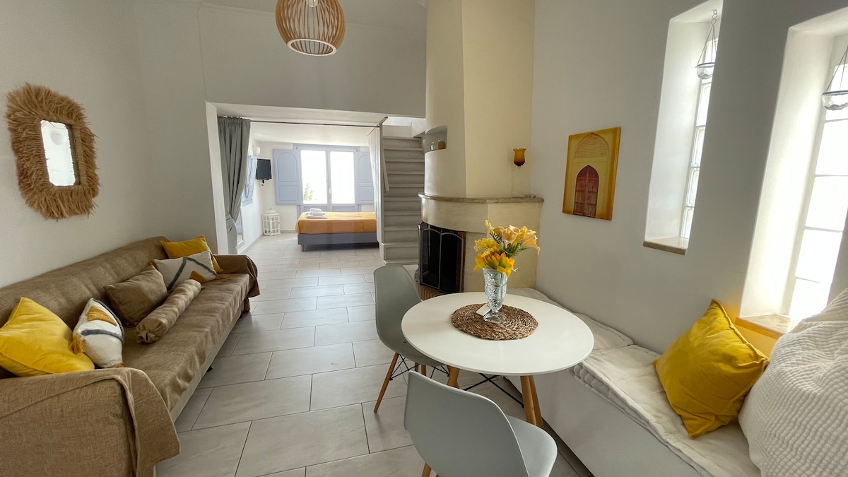 Imaginează-ți un apartament frumos în stil insular, plin de lumină mediteraneană, la doar câteva minute de toate atracțiile principale. Spațiul în plan deschis include un dormitor principal, un living confortabil și o zonă de luat masa, precum și o bucătărie complet utilată, unde îți poți pregăti mesele cu ușurință. Balconul oferă vedere la Marea Egee și la răsăritul soarelui, creând un început magic pentru fiecare zi. Baia modernă oferă tot confortul, în timp ce un dormitor suplimentar situat la nivelul superior oferă un refugiu unic și romantic.