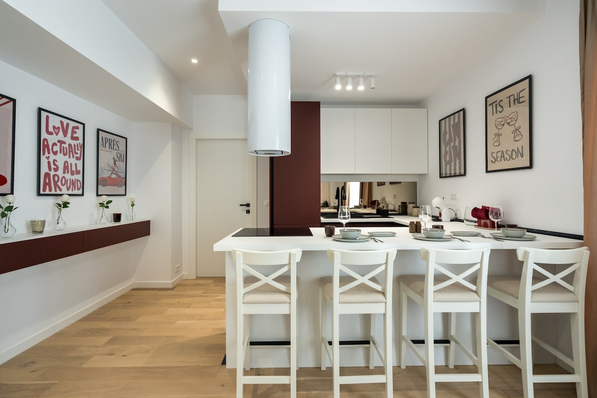 Immerse yourself in artistic elegance and effortless comfort in this stylish one-bedroom retreat. Perfect for business or leisure, this space invites you to unwind with a movie, savor a fresh espresso, or stay productive in a serene setting. Thoughtfully designed for relaxation and convenience, enjoy seamless self-check-in, high-speed WiFi, and nearby parking. Experience Bucharest in style—book now for an unforgettable stay!