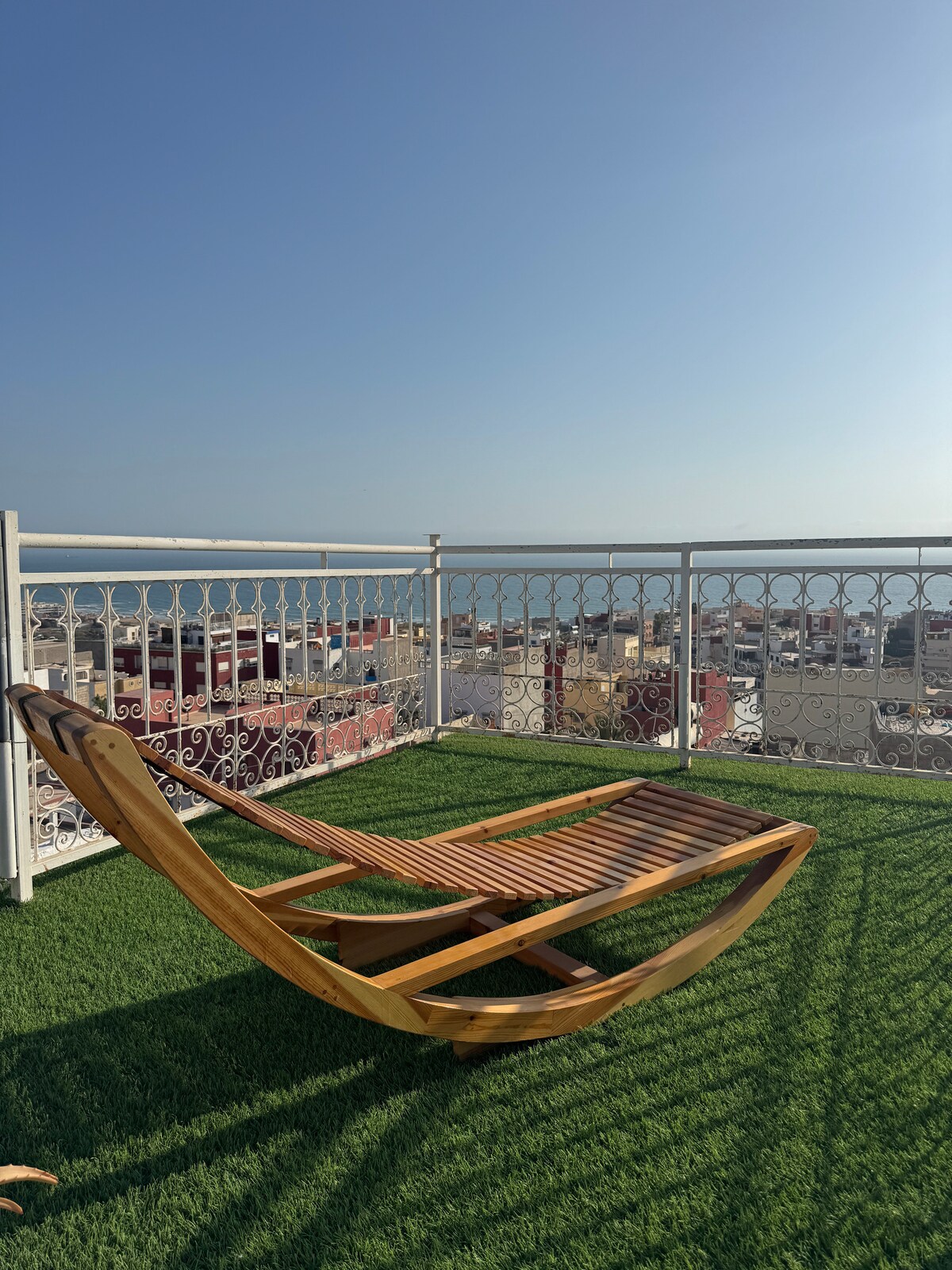 Bucură-te de un apartament luminos și confortabil, cu un dormitor, cu vedere panoramică la ocean și la apus, situat în inima Golfului Taghazout. Perfect pentru cupluri, surferi, nomazi digitali sau oricine caută liniște, confort și timp de calitate. • Vedere la ocean și apus de la balcon • 5 minute de mers pe jos până la plajă • Piscină, loc de joacă și teren de fotbal în interiorul reședinței • Wi-Fi rapid • Comunitate securizată închisă, cu securitate non-stop Te vei bucura de combinația perfectă între calm, vibrații oceanice, energie de surf și confort.