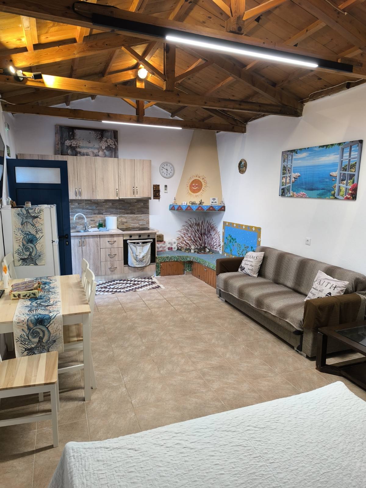 Ai întâlnit casa de piatră. O casă care combină tradiționalul cu modernul !Terasa cu vedere neobstrucționată peste golful Vatica și apusul soarelui te va relaxa și te va duce la albastrul nesfârșit. La doar 8 minute de centrul orașului Neapoli, la 10 minute de pădurea de palmieri pietrificată și de plajele sale cu ape albastre. Atmosfera tradițională combinată cu dotările locuinței și ospitalitatea sinceră îți vor asigura o experiență excelentă.