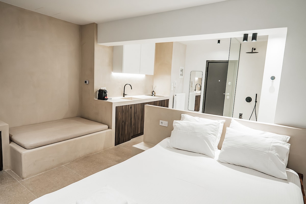 Un apartament elegant în Atena, deținut și proiectat de Neta Dror, un designer și artist care a infuzat spațiul cu viziunea ei personală. Acest apartament are un spațiu unic care combină elemente vechi și noi. Apartamentul are un living mare cu o canapea confortabilă, o masă de sufragerie și o bucătărie cu toate facilitățile. Dormitorul are un pat dublu confortabil și o baie ascunsă, care surprinde și încântă. Acest apartament este mai mult decât un loc de dormit, este un loc de experimentat.