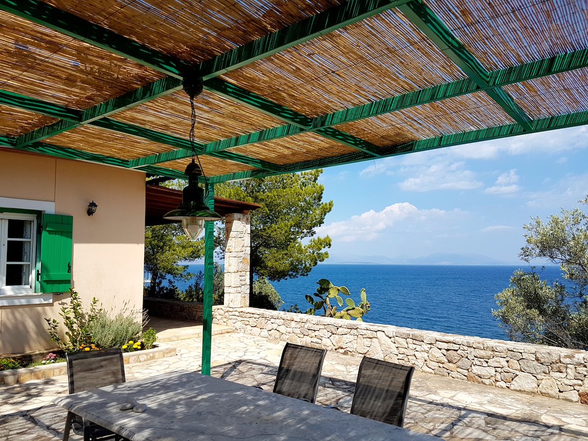 Vilă unică în fața mării, pe 1 nivel, făcând casa extrem de funcțională. Zona înconjurătoare este frumos amenajată, cu grădini, unde te poți bucura de micul dejun, prânz sau cină cu o priveliște minunată a Golfului Argolic. Poziția îl face unic, deoarece are acces direct la o plajă de nisip cu ape cristaline.
