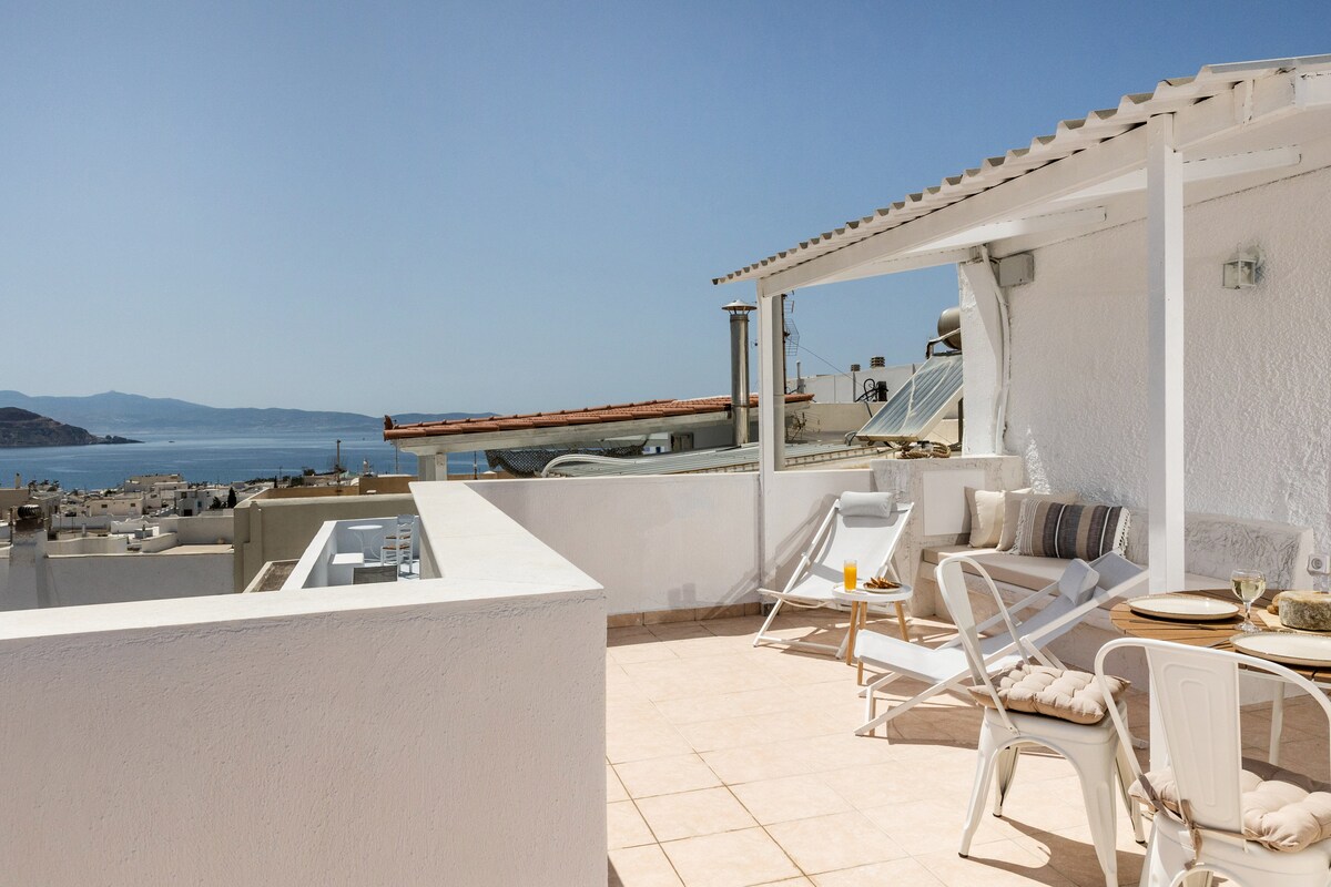 Penthouse spaţios - apartament (38 mp) în centrul oraşului Naxos, la doar 200 m. de plaja din Agios Georgios şi la 500 de metri de castel şi de portul unde se află majoritatea restaurantelor şi barurilor. Liniște și relaxare pentru escapadele de vară în centrul insulei! Te așteptăm!