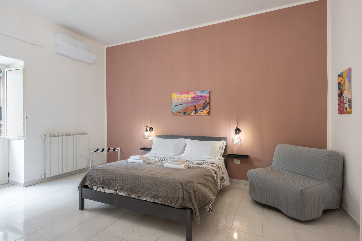 Suită confortabilă și spațioasă în inima orașului Castellammare di Stabia [numai 5 „mers pe jos până la„ Villa Comunale ”pe malul apei] [3 'mers pe jos de Circumvesuviana Stazione di Castellammare di Stabia] Într-una din palatele de la etajul al treilea, cu lift, apartamentul de familie Giufrania este foarte confortabil și perfect pentru relaxare după ce a vizitat diferitele puncte de interes. Situat într-o zonă strategică pentru a vizita cele mai prestigioase destinații, cum ar fi * Sorrento Pompei Amalfi Capri Procida * etc.