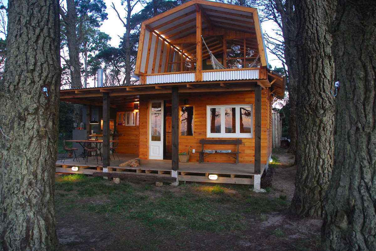 Casă din lemn pe plaja Cabo Polonio. Două medii