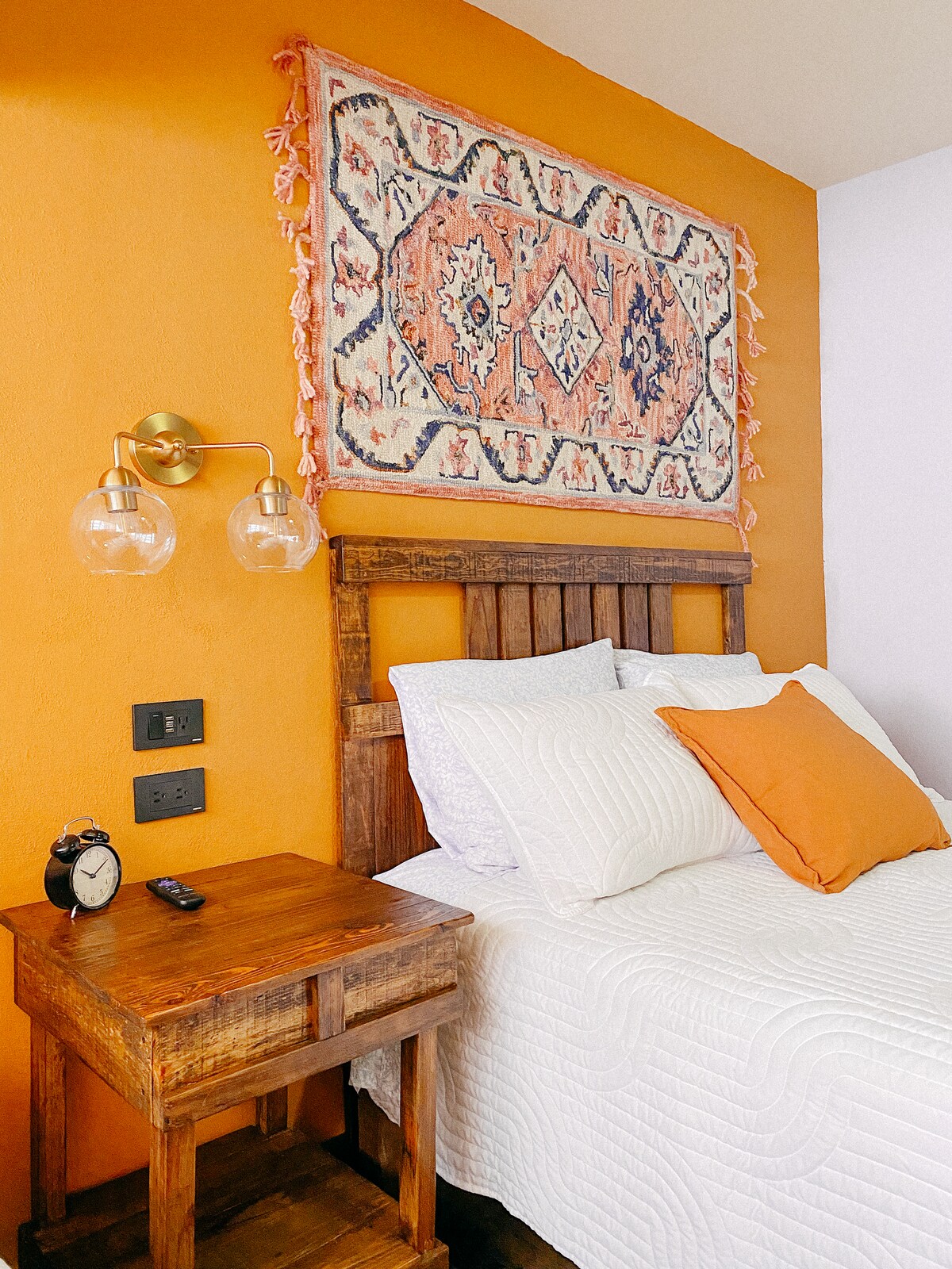Habitacion #C privada en un espacio centrico, dentro del pueblo magico de Calvillo, Aguascalientes. Cuenta con balcón a la calle, 1 cama king size, 1 sofá cama individual, baño completo, aire acondicionado, WiFi, Smart TV, y acceso a todas las áreas comunes y a la cocina completamente equipada en planta baja.