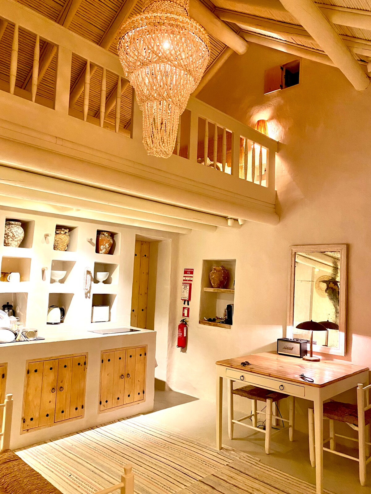 Pavilionul piscinei este un spațiu confortabil și relaxat, cu două apartamente și bucătărie, cu vedere la o grădină luxuriantă și este alegerea ideală pentru o escapadă plină de bucurie și relaxantă. Aranjată la un standard ridicat cu materiale simple, dar sofisticate, cum ar fi pardoselile din micro ciment, pereții de stuc și perdelele de lenjerie de pat și decorată în culori naturale liniștitoare, se îmbină în mod armonios cu împrejurimile sale. Ușile mari ale terasei duc spre o grădină spațioasă, privată, cu terasă din lemn, o piscină încălzită, șezlonguri și masă.