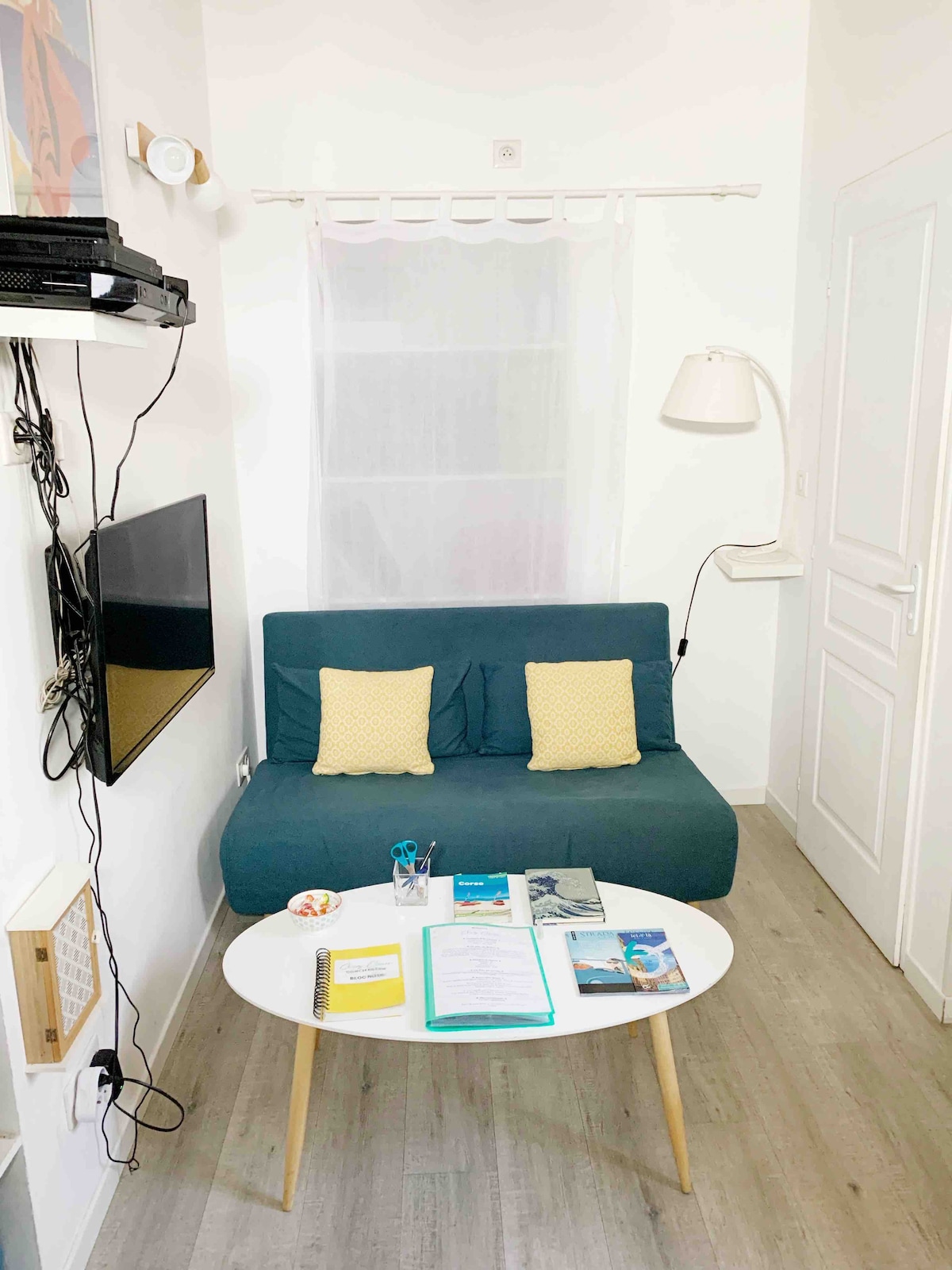Numéro d’enregistrement : 2A00400010572 Appartement tout confort, lumineux, moderne, en centre ville, idéalement situé proche tous commerces, port, gares, au 1er étage avec ascenseur, code pour accéder a l’immeuble et porte blindée, cuisine toute équipée , un séjour / coin nuit, une petite chambre avec lits superposés (enfants ou petits gabarits), une salle de bain, climatisation et chauffage central, fibre optique, lecteur DVD, écran plat dans chaque pièce, Nespresso, grille pain, bouilloire