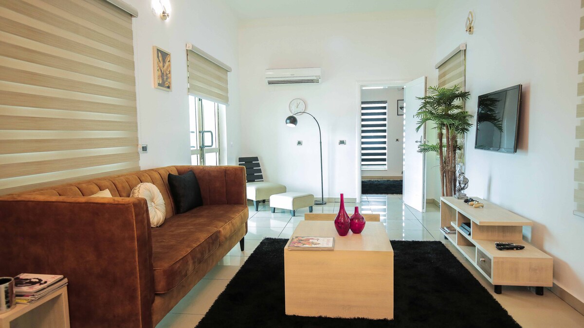 Relaxează-te cu familia în confortabilul nostru refugiu Lekki Faza 2, perfect pentru orice ședere. Fiecare dormitor și zonă de living includ băi proprii, plus o toaletă pentru oaspeți pentru un plus de confort. Acest refugiu cu 2 dormitoare se mândrește cu articole de lux moderne, cum ar fi o bucătărie complet echipată, internet de mare viteză și televizoare inteligente. Situat în apropiere de destinații comerciale de top, cum ar fi Novare Mall și Blenco, și la câteva minute de plaja Atican și Centrul de conservare Lekki. Ideal atât pentru vizite rapide, cât și pentru șederi prelungite!