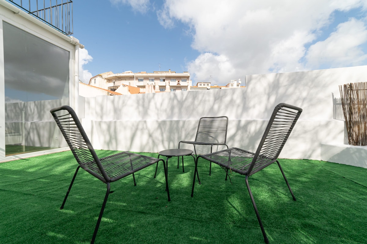 A stylish 1-bedroom rooftop apartment with a private terrace and stunning views of the Sao Jorge Castle and Tagus river. Located in the heart of Lisbon, in Marques de Pombal close to the emblematic Eduardo VII park and Avenida da Liberdade. ⚠️PLEASE NOTE there is construction work next door and may be noisy during the day** The rooftop apartment is accessible via an outdoor spiral staircase. Due to the stairs, please note that this apartment is not suitable for people with reduced mobility.