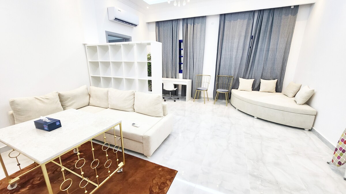 Studio elegant de închiriat zilnic în Al Ain - lângă Spitalul Tawam și Universitatea din Emiratele Arabe Unite Bucură-te de o ședere confortabilă într-un studio complet mobilat, într-o locație excelentă din Al Ain, lângă Spitalul Tawam și Universitatea din Emiratele Arabe Unite. Intrare privată pentru a asigura intimitate completă Complet mobilat, cu un design modern și confortabil Echipat cu toate serviciile: internet, aer condiționat, TV și ustensile de bucătărie Locație strategică, aproape de toate facilitățile și serviciile aproape de clubul de echitație, tir și golf