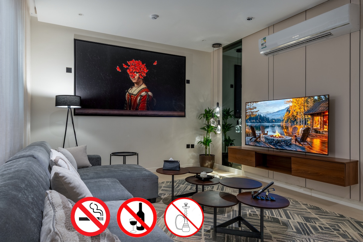 استمتع بتجربة سفر رائعة مع من تحب في واحدة من افخم الشقق في حي العلياء وسط مدينة. تم اختيار الموقع بعناية متناهية وسط مدينة الرياض و في حي العلياء الراقي. لقد تصميم المسكن ليعطيك شعور حقيقي بإنه بيتك الدائم ، حيت ثم مراعاة جميع وسائل الراحة و الترفيه ، و تم استخدام تجهيزات منزلية عالية الجودة لتعطيك جوء من الفخامة و التفرد. اخترنا افضل الخامات القطنية و مراتب و مخدات النوم المريحة لتنعم بنوم هانئ. و كذلك الأمر لغرفة المعيشة تم تأثيثها بكنب فاخر و مريح. و يمكنك الدخول المنزل عن طريق القفل الذكي.