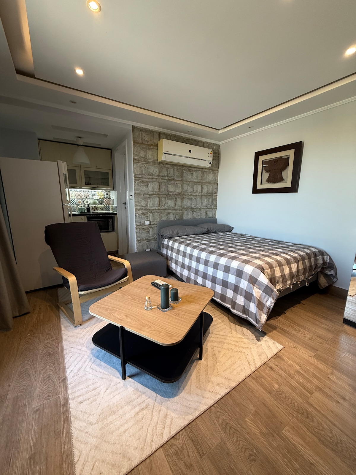 This unique place has a style all its own. Escape to a private rooftop retreat in the heart of Zayed, directly in front of Al Ahly Club . A unique studio designed for comfort, style, and tranquility. You’ll be perfectly located to explore the city while enjoying peace and privacy. Just 20 mins to the Grand Egyptian Museum of Civilization and 25 mins to the pyramids and Sphinx Airport. NB: No unmarried couples.