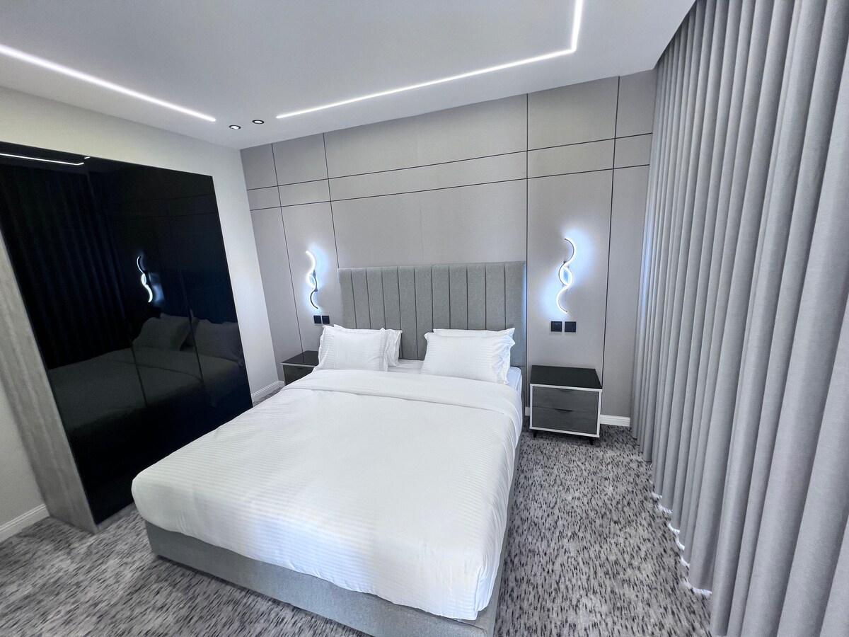 Te vei distra de minune în acest modern de lux cazare confortabilă cu Wi-Fi GRATUIT de mare viteză. Apartament nou mare format din 3 dormitoare, un living modern, 2 băi și o bucătărie complet utilată, situată aproape de Moscheea Profetului.