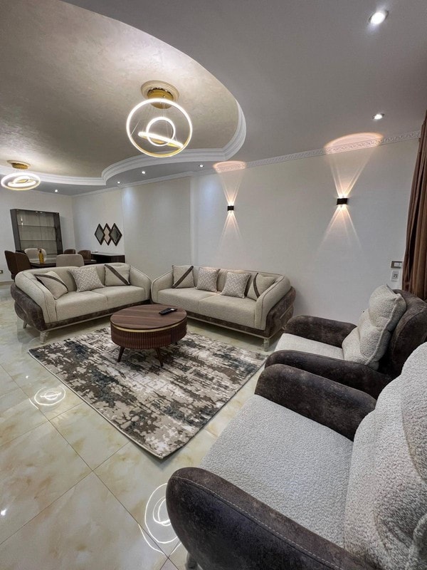 Experience modern luxury in the heart of Heliopolis, Cairo, in this newly renovated 3-bedroom apartment. Perfectly located just minutes from Cairo International Airport, this 4th-floor sanctuary offers a spacious and sleek design with custom-made furniture and artwork by local artisans. With enough space to comfortably sleep six guests, two stylish bathrooms, and a balcony for fresh air, this apartment is ideal for travelers seeking a sophisticated and comfortable home base while exploring Cairo