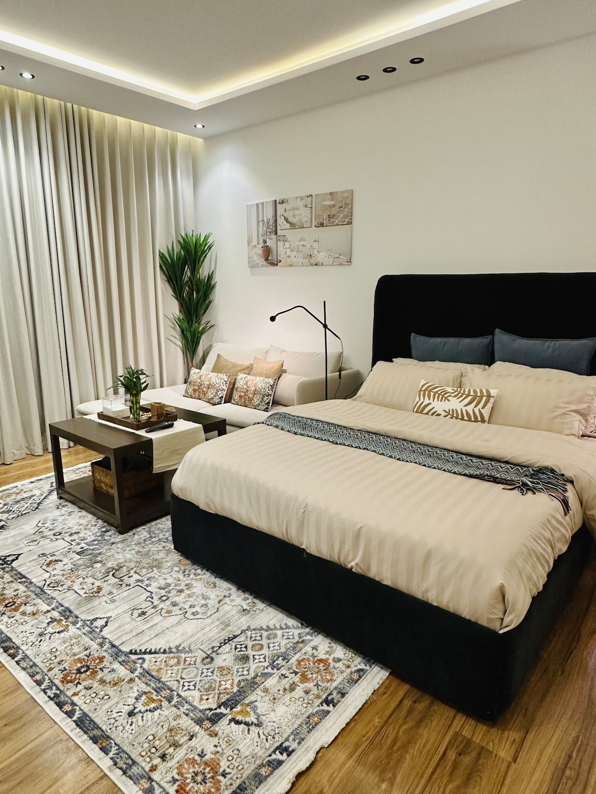Bucură-te de o ședere modernă în Olaya din Riad. Acest apartament elegant are un balcon privat cu scaune în aer liber, un dormitor confortabil cu separare inteligentă, o zonă de living confortabilă, chicinetă complet utilată, mașină de spălat rufe în unitate și spațiu de lucru. La doar 8 minute de mers pe jos de metrou, cu hipermarketul Al Jazirah chiar peste drum. Zona este vibrantă și plină de restaurante și cafenele, perfecte pentru iubitorii de mâncare și pentru șederile de afaceri sau de agrement.