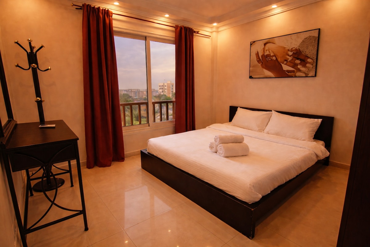 The listed price includes our Standard Package, covering electricity & high-speed Wi-Fi, prepared bed linen (no replacement), towels provided once only, emergency maintenance, a Smart TV with apps installed (no paid subscriptions), and spare key support. A Premium Package is available as a paid upgrade, including housekeeping on demand, premium channels (Netflix, beIN Sports, paid channels), full maintenance, 24/7 premium support, linen & towel replacement, and amenities refill.
