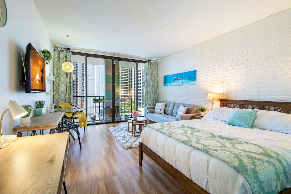 This modern studio was personally renovated with the help of my closest friends and family, and our “ideal day in Honolulu” in mind. We prioritized quality, function and comfort. - Unbeatable location! Steps to Waikiki, Ala Moana Beach, and Ala Moana Mall - Newly renovated and designed - High speed internet + WIFI (for those living that remote life!) - Parking available ($32/night - this is cheap for Waikiki) - Laundry room right next to the unit (accessible via app)