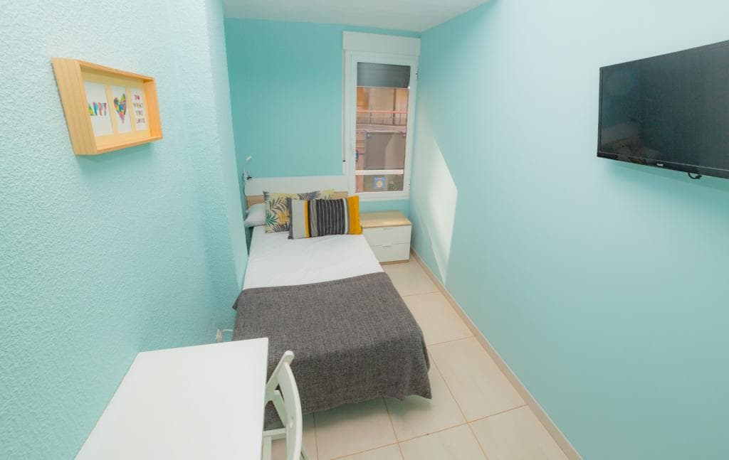 Welcome to ALMA one! Stay in a clean and modern family room in a peaceful area of Alicante and begin exploring the city and its beautiful beaches. Your private room includes a 140 cm bed, a bunk bed, air-conditioning and a private bathroom. All guests also have access to fast WiFi, a cozy shared space with music, bar seating, a diner-style table setup with sofas, a work and reading section and a shared kitchen. Access to the property is fully automated and requires an online self che