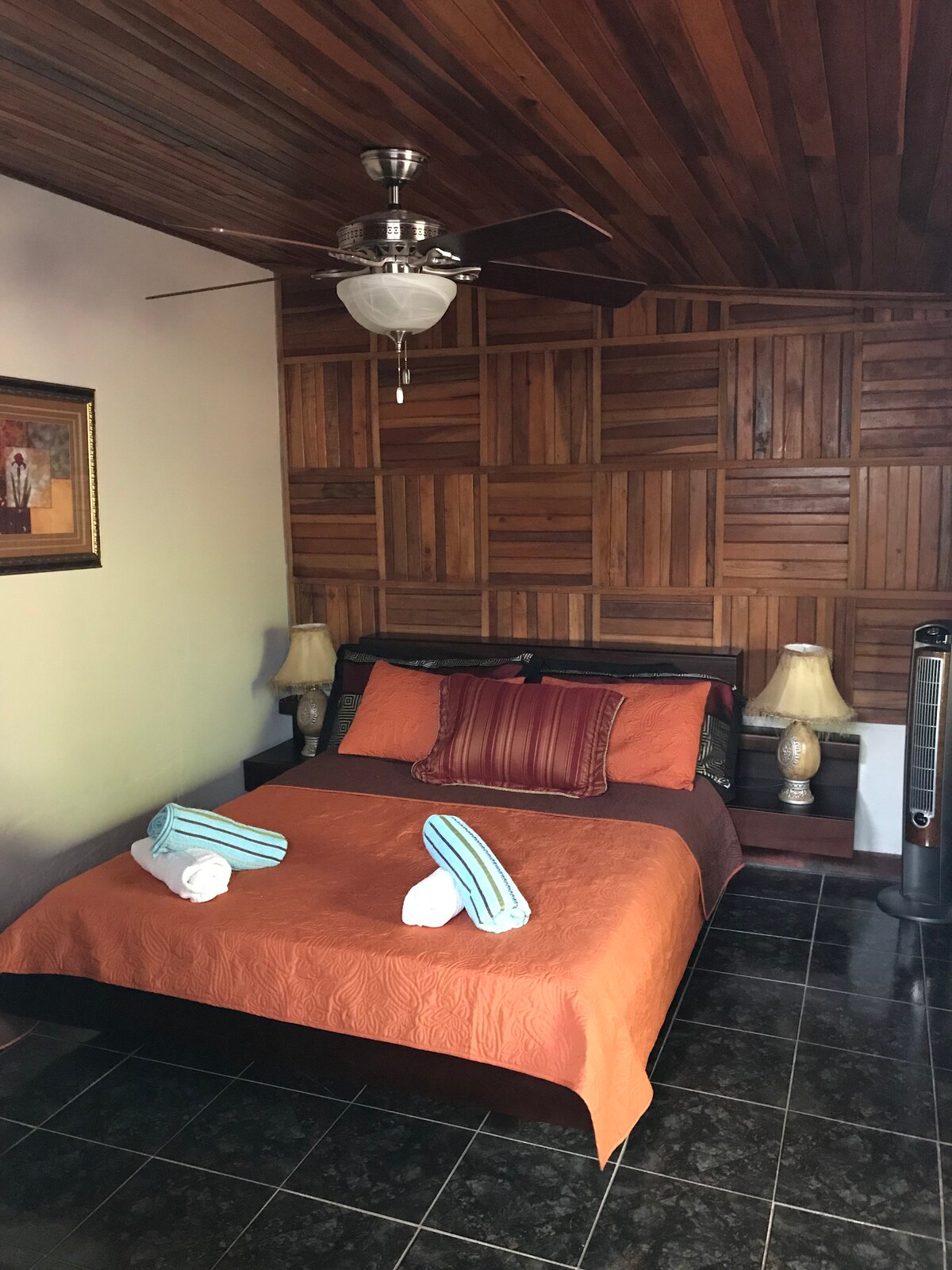 We offer a delicious Typical Costa Rican Breakfast for only $5 per person, our guests love it. Breakfast must be paid in cash. The second room is included free for reservations of 3 or more guests. When booking for 2 guests, the other room can be used for an additional $20. It is the perfect place to rest after a long trip. Sitting on our terrace and looking at the garden will make you feel that peace you are looking for. There is free and secure parking.