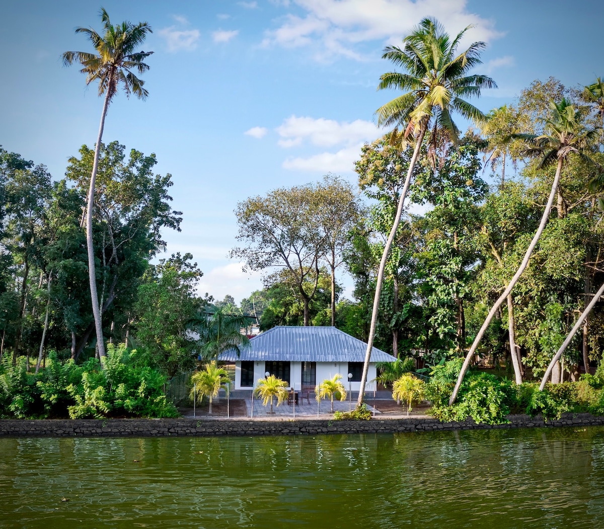 Iată refugiul ideal de pe malul lacului Vembanad, care este al tău! Vila noastră uimitoare pe malul apei, ascunsă de-a lungul țărmului liniștit, oferă cel mai înalt nivel de confort și relaxare. Escapada noastră de coastă este locația perfectă, indiferent dacă dorești să te angajezi într-o serie de activități în aer liber sau pur și simplu să te relaxezi în sunetul valurilor. Bucură-te de o escapadă romantică pe malul apei sau de o întâlnire cu familia și prietenii în cabana noastră confortabilă de lângă apă. *te rugăm să aduci actul de identitate original la sosire.