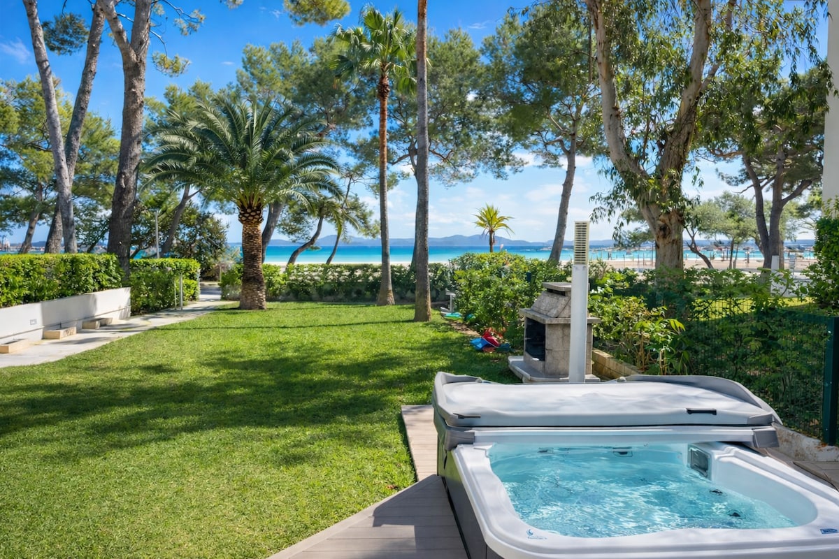 Casa moderna y amueblada con muy buen gusto en primera línea del mar en Alcudia. Dispone de 5 habitaciones, 4 baños, dos salas de estar, una cocina totalmente equipada, parking privado y acceso directo a la playa. La playa con arena blanca y el agua limpia de color turquesa es mundialmente famosa.