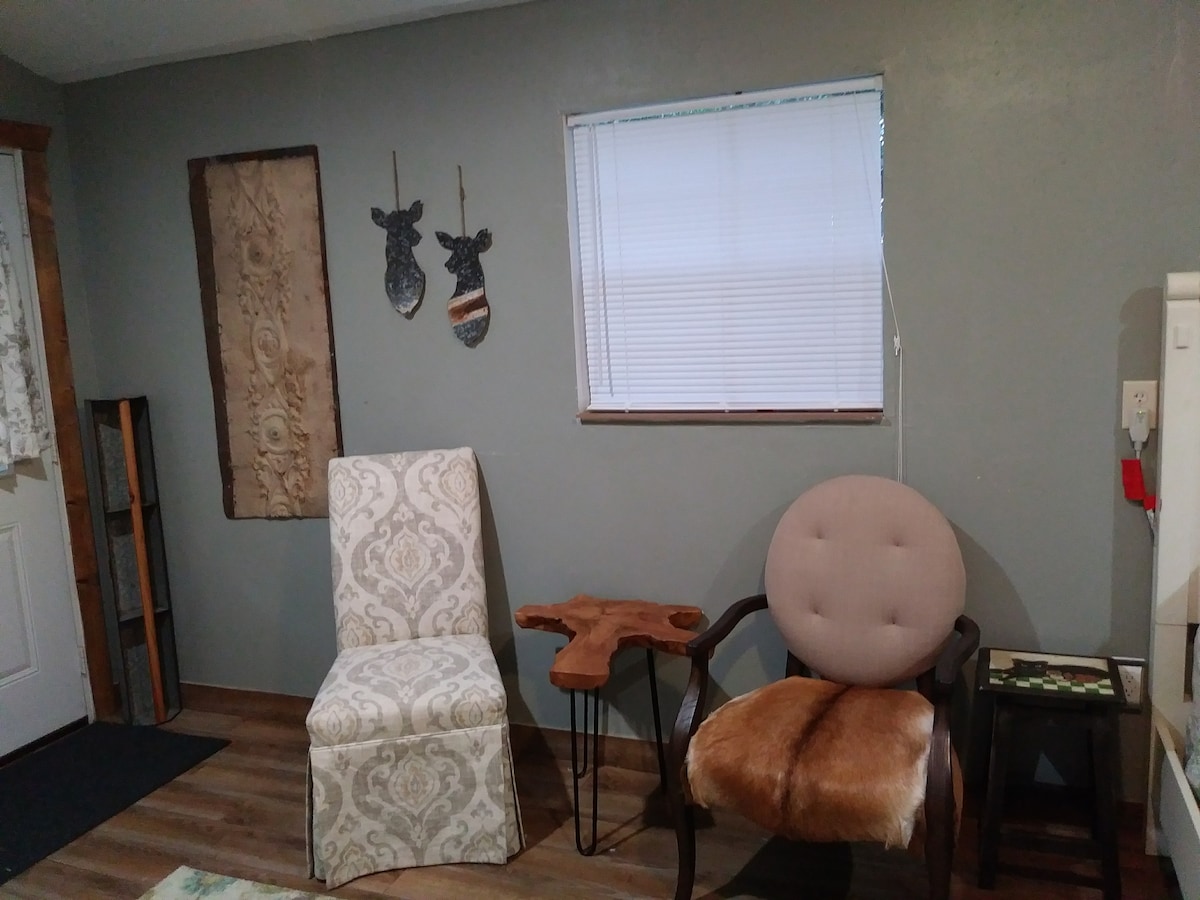 Tiny Home with full kitchen on a peaceful 13 acres in a small town. Owner lives on site, but the tiny home is away from the main house so it is private. Ideal for 2 guests, but there is a pull-out sofa which could be comfortable for one more adult or a couple kids. Room for more than one car or a trailer. (Not suitable for 4-legged travelers due to free ranging ducks, peacocks and close proximity to horses and miniature donkeys) (If your dates are unavailable, search Mira Bella South)