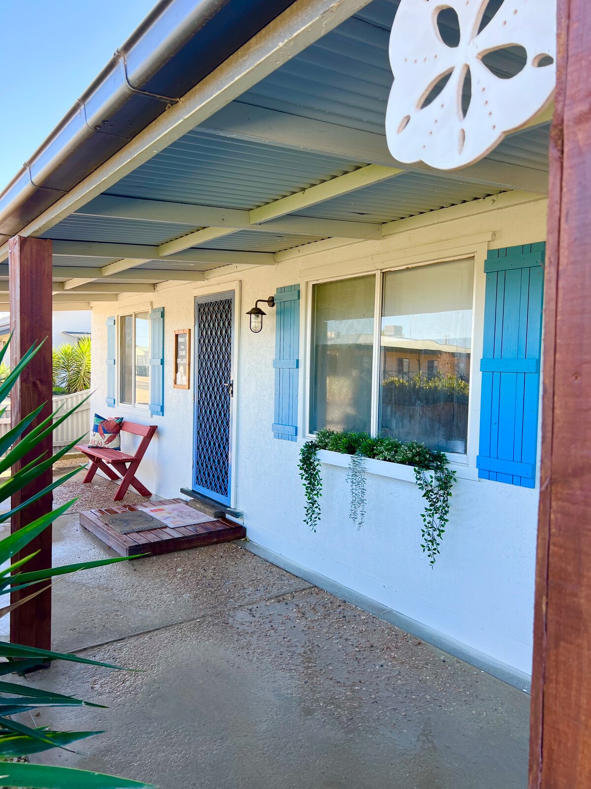 Bine ai venit la Sandy 's Shores, 400 de pași simpli până la frumoasele nisipuri albe din South Beach. Veți găsi o plimbare uimitoare de 5 km, înot sigur, zonă de picnic umbrită de copaci pe plajă, grătar și debarcader/pescuit, „Refugiul nostru pentru cupluri” îți urează bun venit la confortul vesel al întregii unități sigure, autonome. Cartierul nostru încântător și liniștit de pe plajă vine cu bucurie la viață în timpul sărbătorilor. Relaxează-te, relaxează-te, bucură-te! Nu poți face nimic sau le poți face pe toate în Peninsula Yorke 😃
