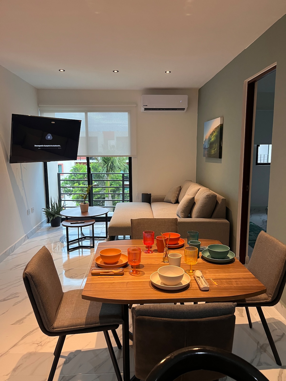Petrece o vacanță calmă, relaxantă și caldă în acest apartament de lux. Decorul său frumos și locația liniștită vă oferă armonia necesară pentru odihnă într-una dintre destinațiile de top din lume: Cancun. Apartamentul are un dormitor mare cu un pat king-size, bucătărie echipată, AC, Wi-Fi rapid, TV de 65"cu subwoofer cu Netflix și HBOmax, living, terasă și securitate completă în jurul apartamentului. Zona comună include un teren de tenis, piscină mare și acces la plajă!