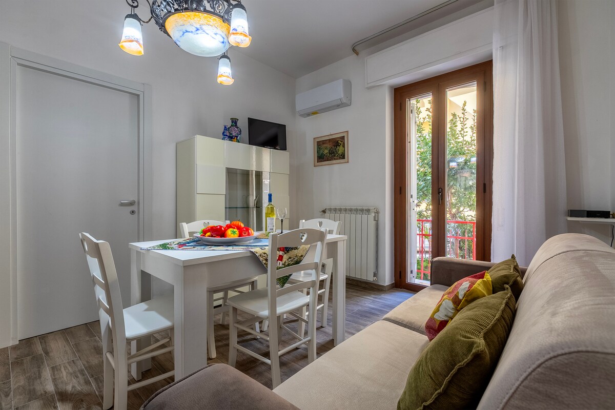 Apartament luminos în stare excelentă, la etajul 3, fără lift, la câteva minute de centrul istoric și la 100 de metri de mare. Apartamentul constă din: living cu chicinetă, dormitor dublu, baie, balcon, living cu terasă echipată pentru luat masa în aer liber. În apropiere se află restaurante, supermarket, bar, pizzerii, oficiu poștal, bănci, stație de autobuz, farmacie, tutun și grădini publice pentru copii cu zonă atașată pentru câini. Parcare gratuită pe stradă.