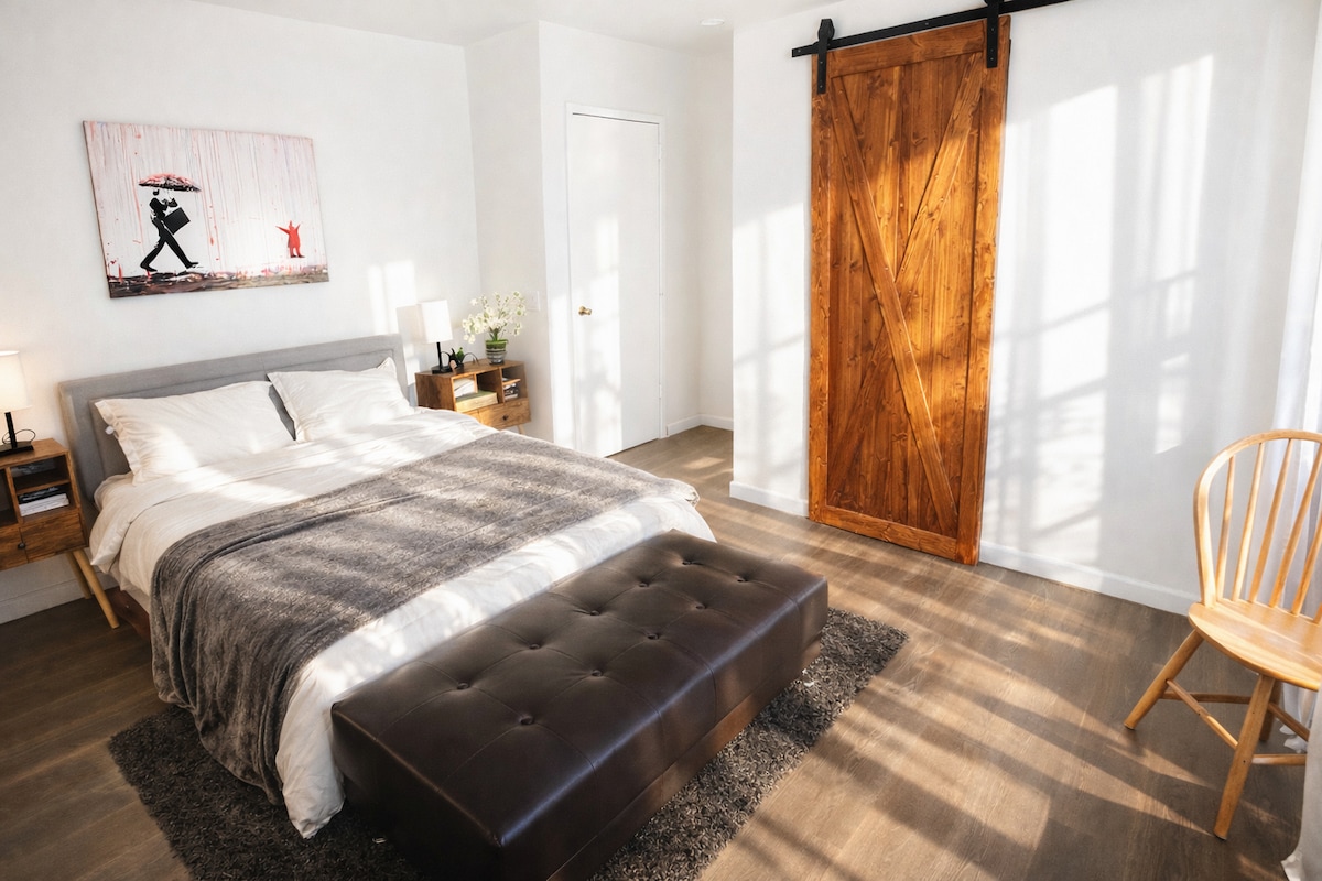 Casă de oaspeți de sine stătătoare, liniștită și confortabilă, cu intrare privată și check-in independent. Fără contact cu alți oaspeți, nu există spații comune — totul este în întregime pentru utilizarea privată. Are un pat matrimonial ideal pentru cupluri, o canapea extensibilă suplimentară poate fi pusă la dispoziție pentru ca al treilea oaspete să doarmă pe ea. Aer condiționat și încălzire, birou, ventilator și detector de fum. Bucură-te de o bucătărie privată pentru gătit ușor, un duș și perdele opace pentru un somn odihnitor. Ferestrele mari oferă suficientă lumină naturală.