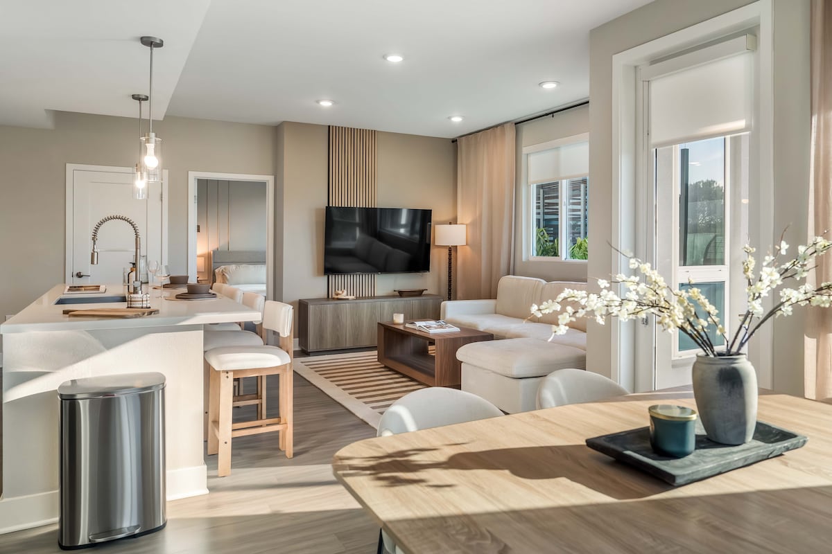 Fără taxe ascunse, fără sarcini suplimentare necesare, mai multe dotări gratuite pentru tine și familia ta! Bucură-te de o locuință cu adevărat americană în inima orașului Placentia, unde toți vecinii îți cunosc numele. În timpul verii, familia poate sta răcoroasă în interior cu jocuri arcade retro sau un cocktail gratuit de alcool! În timpul iernii, bucură-te de o seară afară pe terasă, cu un șemineu privat și trei lămpi de încălzire în jurul mesei în aer liber sau fă o baie în piscina încălzită de 82 de grade.