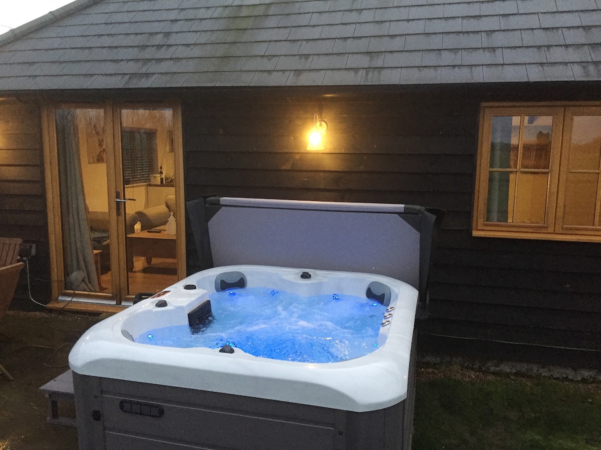 Cabană unică și frumoasă din lemn de lux, cu priveliști remarcabile asupra Văii Alkham. Cazare studio în sistem self-catering pentru 2 adulți, inclusiv baie și pat matrimonial. Propria punte privată de 85 m2, cadă cu hidromasaj acoperită cu TV, și difuzoare în aer liber, bbq cu gaz și o sală de gimnastică privată mare. Cabana este amplasată în vârful unui deal, în grădina noastră din spate, cu spatele pe o pădure. Există o gamă de scheme de culori; roz sau albastru. Culoarea standard este roz, dar te rugăm să ne trimiți un mesaj în avans, dacă preferi albastrul.